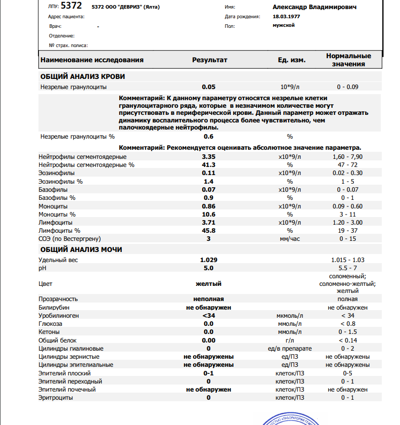 Самое интересное и по делу, это уже 2016 год. Мы семьей переехали в Ялту, ко мне приезжал товарищ погостить и что-то мы с ним не слабо так в течение недели выпивали. Он уехал. У меня прихватило. И я пошел сдать кровь. Вот тогда результат: Гепатит В - положительно. Там и другие анализы были, гепатит С, ВИЧ, паразиты - здесь все норм.