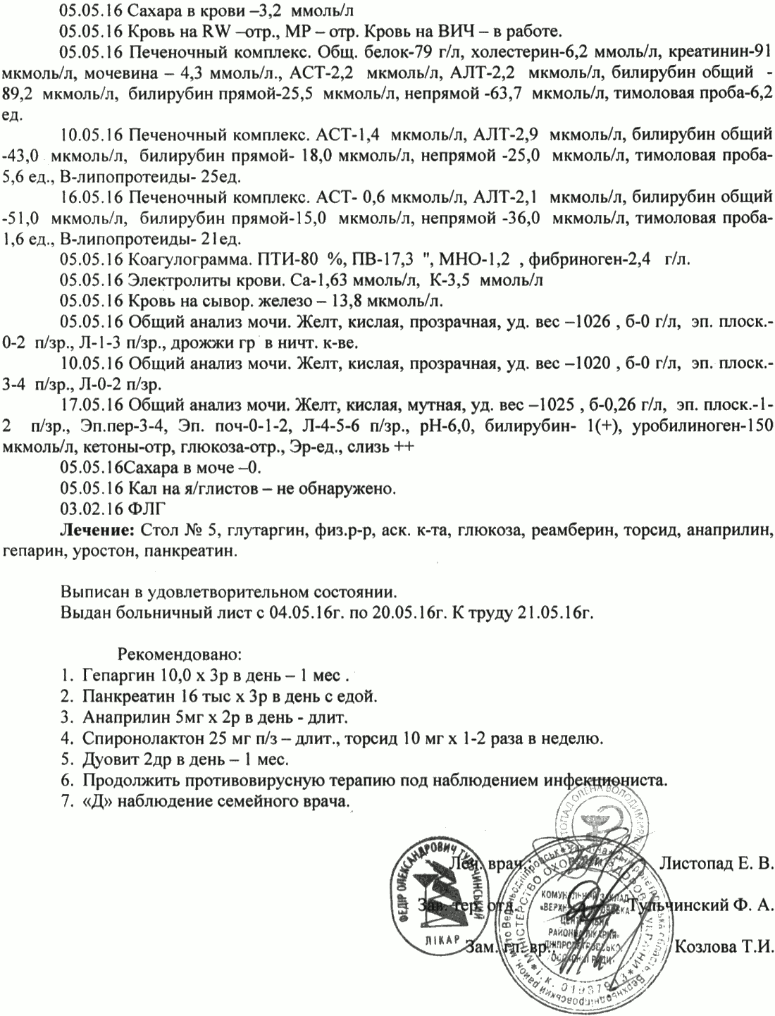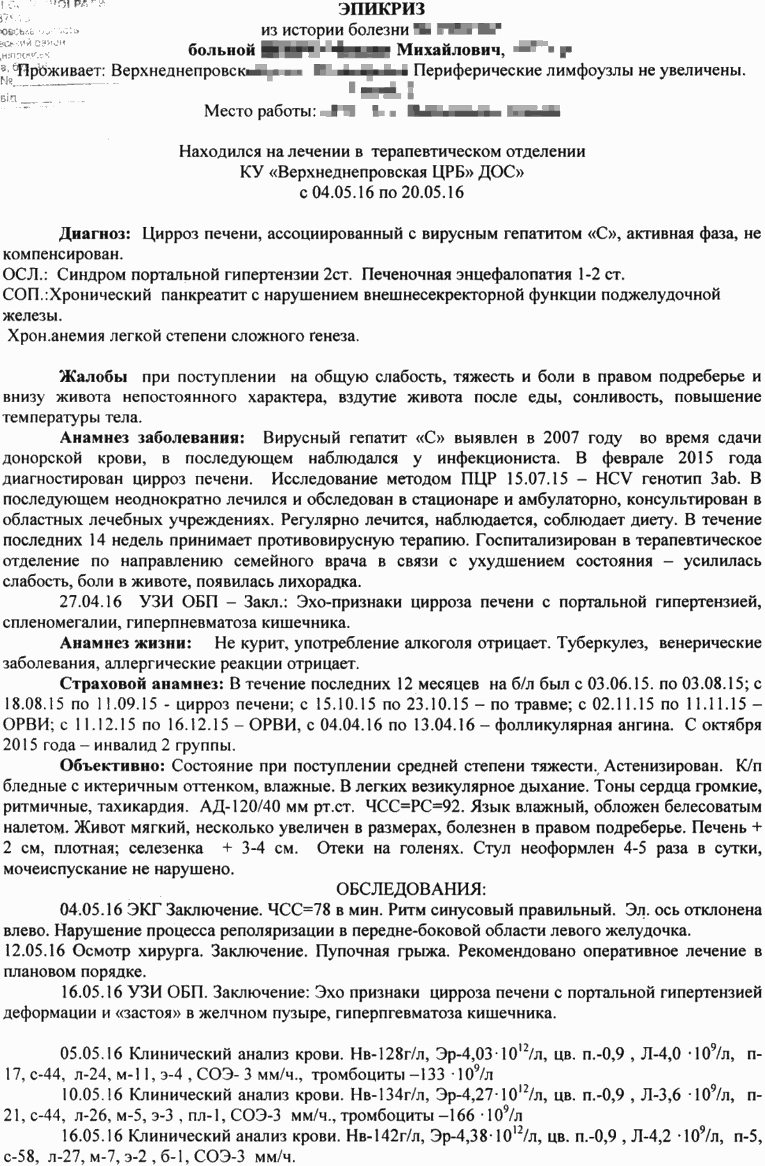 Вот эпикриз из терапии: