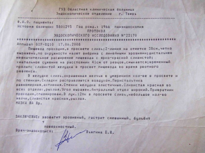 решил более подробно анализы (сканы)показать.эндоскопия старая еще ,за 2008 год .выложил , чтобы понятно было что в анамнезе было ,да и свежее нет.не делал.