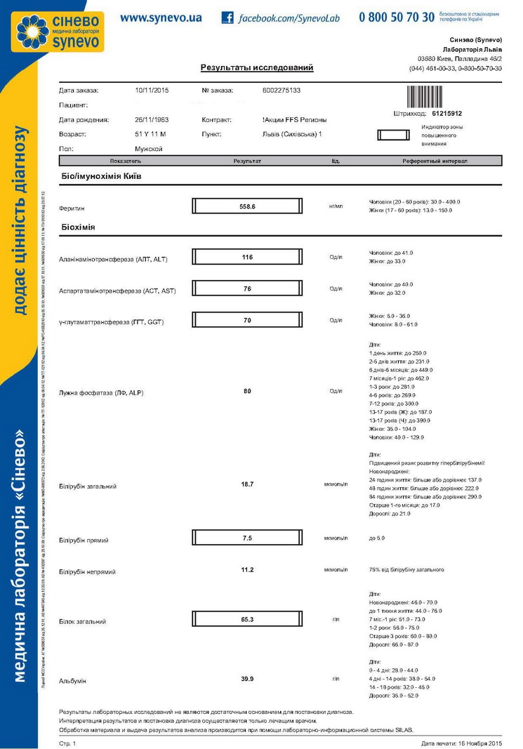 Анализы сдал 10.11.15 г. См.вложение. Беспокоит высокий гемоглобин, очень низкие тромбоциты,высокие АЛТ,АСТ,ГГТ и очень высокий ферритин, еще раньше сдавали Антинуклеарные-1:1000, ставили смешанную поликриоглобулинемию 2-го типа. Нагрузка - 4,0х10*5 мо/мл(1,6х10*6 копий РНК/мл).