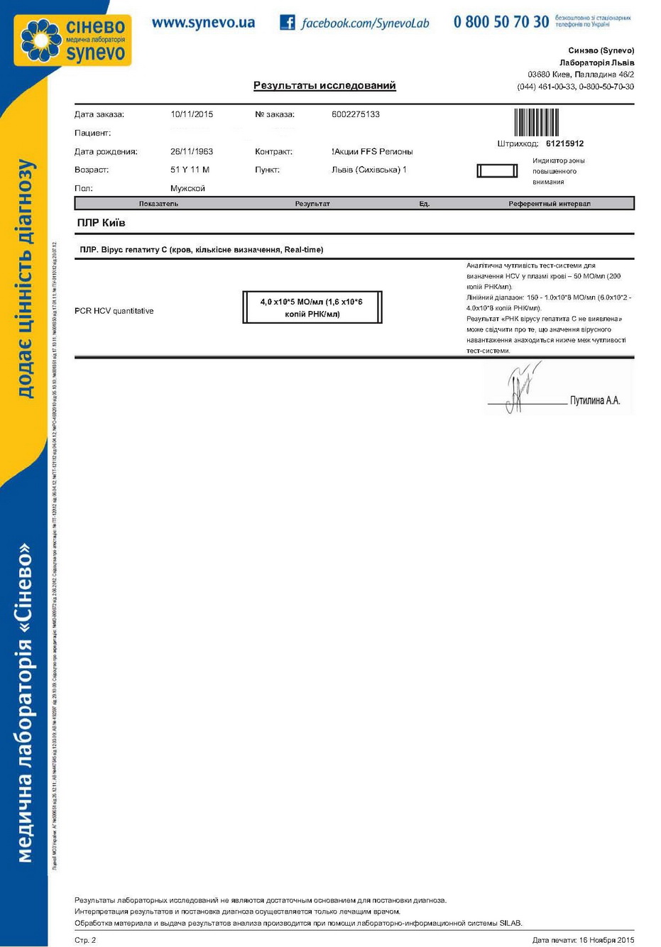 0нд-ПЦР[2,6х10*5МЕ](пег+риб) 26.06.2015 - Начало