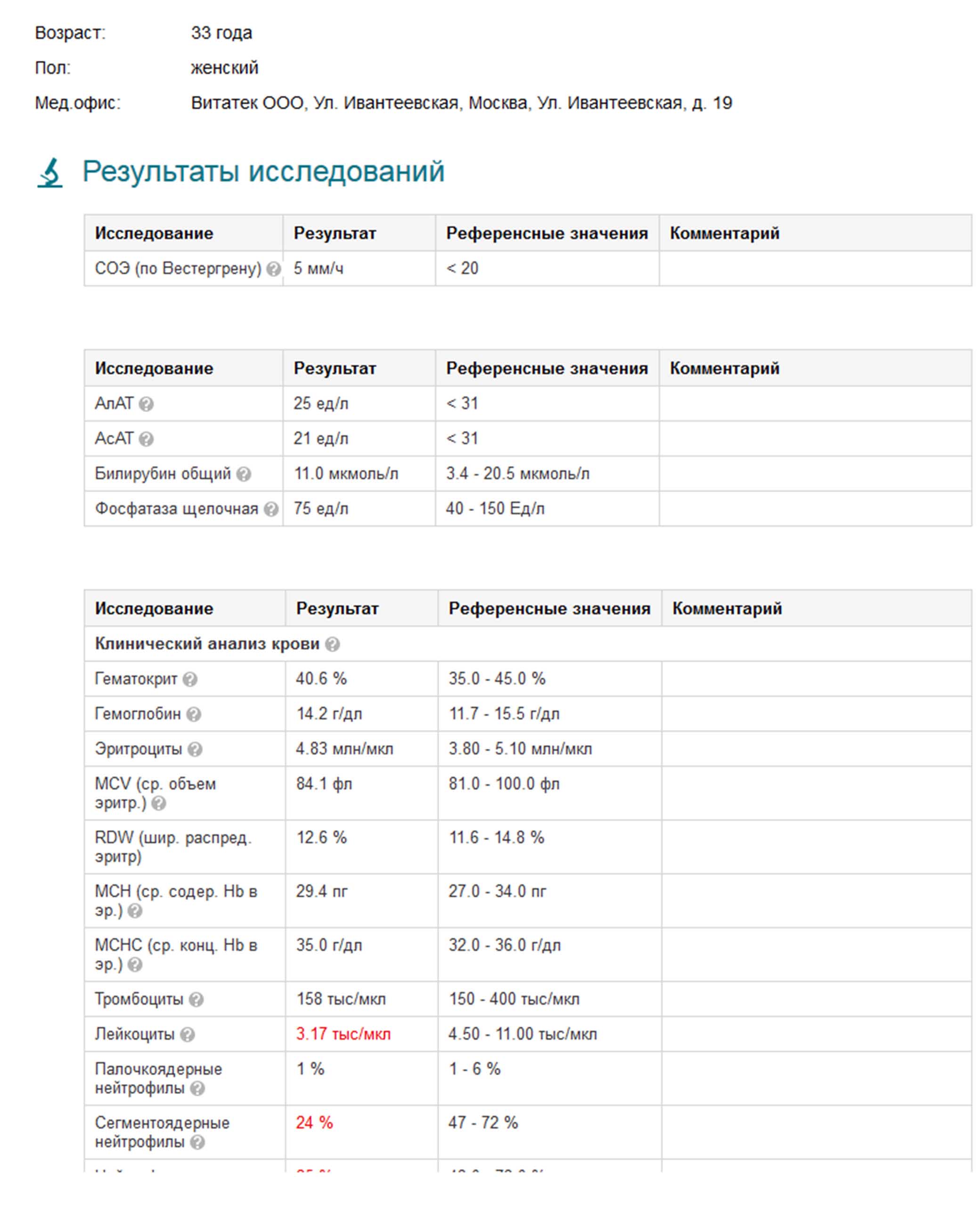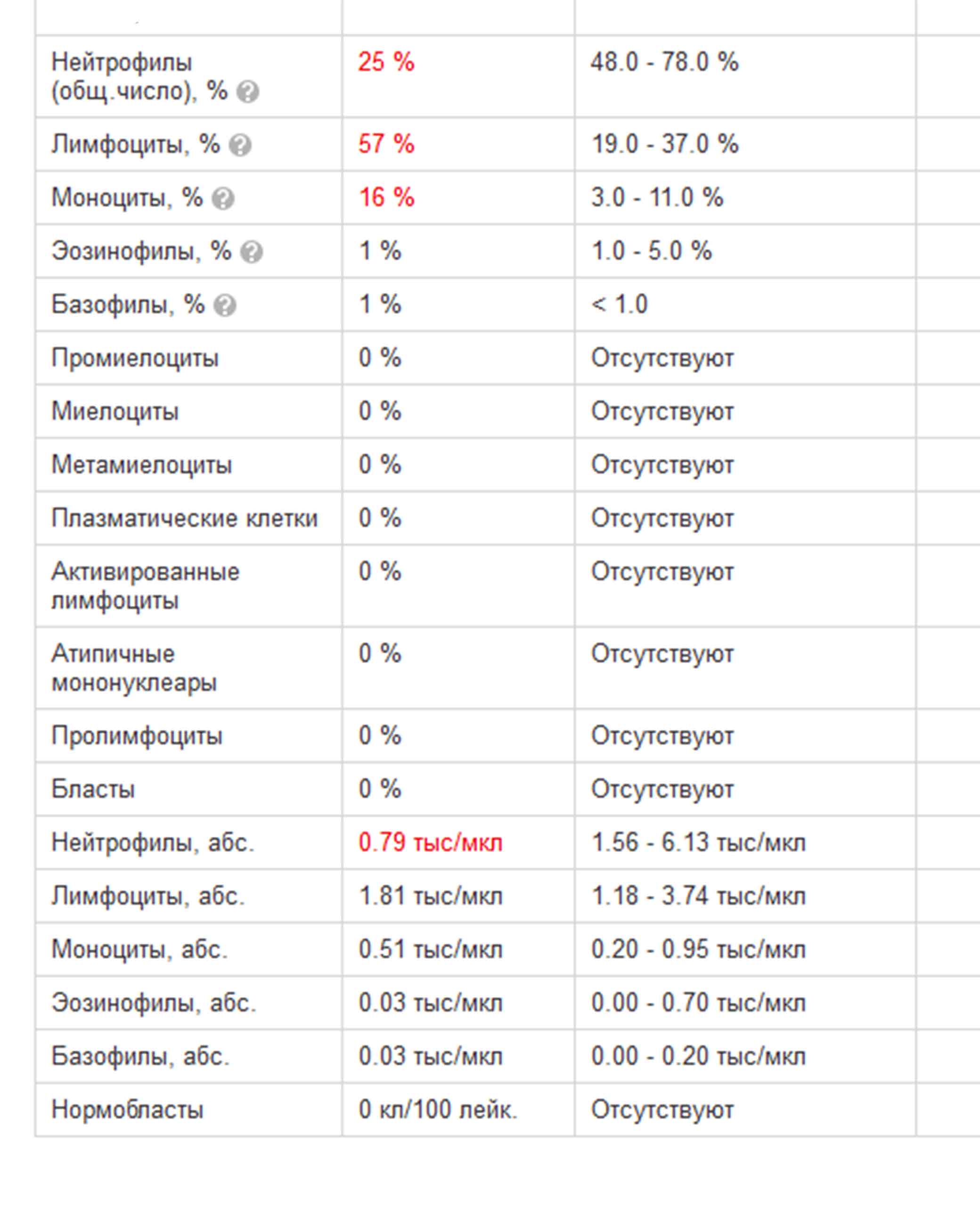 Результаты анализов после 6 недель пвт: