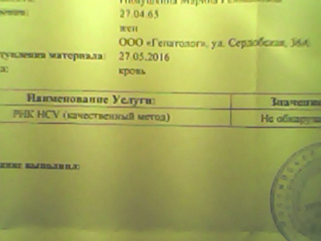 Здравствовать всем! Зовут меня Марина, мне 51 год, рост 176,вес 60, с гепатитом наблюдаюсь с 2000г.В 2013 г. был ложноположительный анализ на вич,с этого времени и начались проблемы со здоровьем.Сначала посыпались волосы, стала худеть, чувствовала прострелы по периметру печени,варикоз на ногах усилился. Алт,асат,билирубин были всегда чуть выше нормы. По узи, кроме полипа в желчном(3,5мм) все хорошо. ФГДС-норма. Фибросканы:январь 14г-F3,через полгода-F2, еще через полгода-F4, еще через 2мес.-F3.Явно уменьшилось кол-во мочи и усилилась отечность в ногах(креатинин-норма) Поняв, что ПВТ по ОМС мне не видать, как своих ушей,собрала оставшиеся силы, устроилась на три работы(эт для тех, кто откладывает терапию из-за отсутствия денег) и скопив нужную сумму закупила Sofab LP на 16 недель.Схему выбирала долго и мучительно,т.к.от многих лекарств(а иногда и без них) были сердцебиения,покалывания, судороги, нехватка воздуха.На случай непереносимости софосбувира, взяла китдака в капсулах(чтоб сразу перейти на: дак+асун+риб). Слава богу все обошлось! НИКАКИХ побочных действий,как я их не ждала, так и на пришло! В целом почувстововала постепенное прибавление сил. Начала потихонечку заброшенную гимнастику.Вчера было 8 нед. терапии. Да, забыла, через две недели после удачного старта, попробовала добавить полагающийся моему фиброзу, рибаверин, на пробу 600мг, поплохело мне сразу же(трепыхание сердца,нехватка воздуха),В надежде на привыкание терпела эти "задыхательства" дней 5,появилась тупая боль в солнечном сплетении, вобщем отказалась я от рибов. На сегодняшний день из плохого: правый бок все равно дает о себе знать,при наклонах (а иногда и без них) в глазах летают "звездочки"(Хотя гем. неплохой-134) Тромбоциты понизились, а вот билирубин не хочет падать