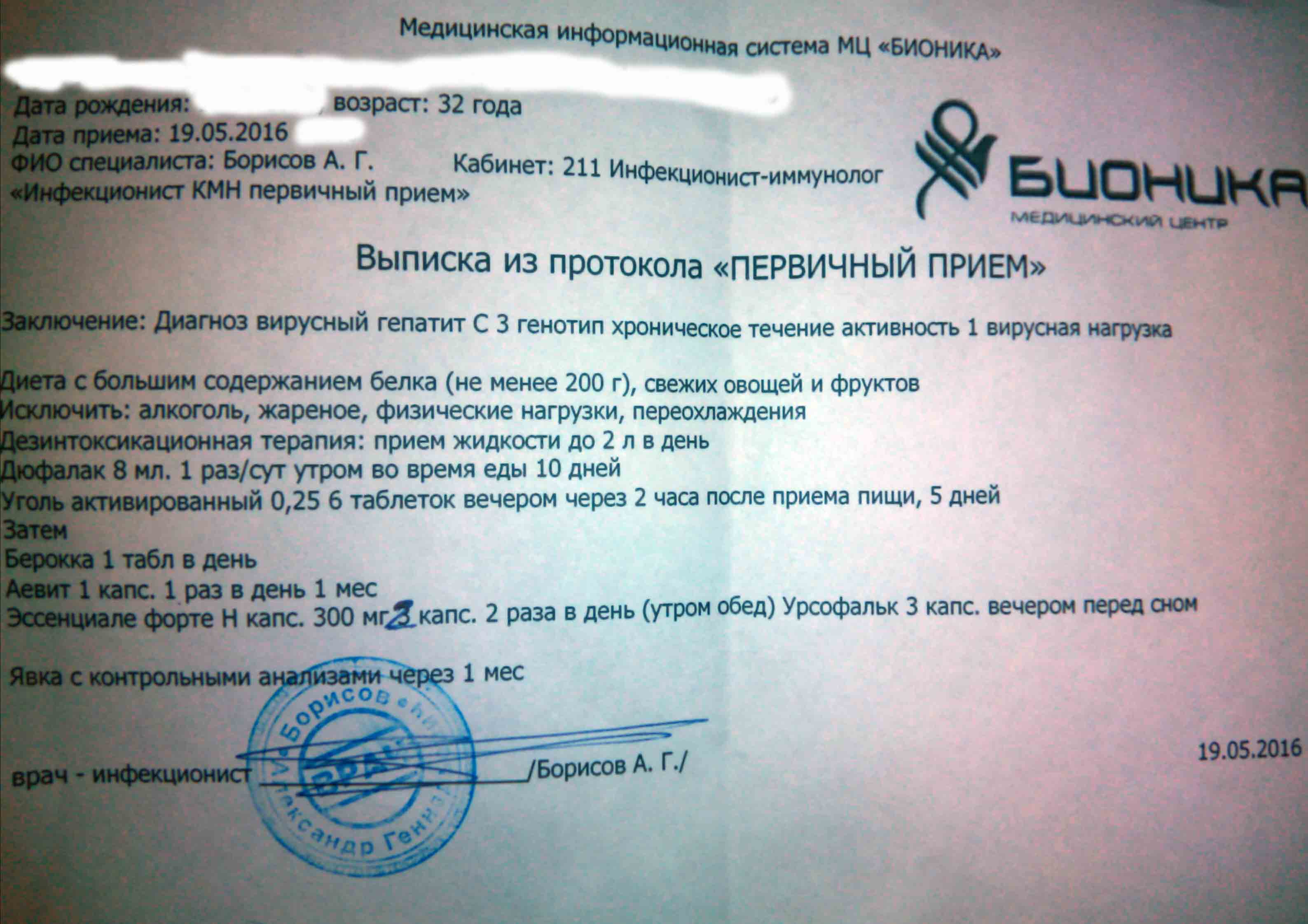 После фиброскана муж как-то погрустнел и сам стал придерживаться диеты. Пока проходил все эти обследования я уже узнала про форум и про доступное и эффективное лечение. На приём к платному врачу сходил- лучше бы не ходил. Выписку из протокола прикрепляю. Из разговора с врачом выяснили- нагрузка у него маленькая, лечение не требуется, а вот после 22/06 он подпишет с индусами договор, и мы сможем через него за 2000$ заказать леки, а пока, до 22, пейте уголь активированный и дюфалак, сдавайте заново анализы и приходите. На этого доктора мед. наук я на Флампе оставила отзыв.