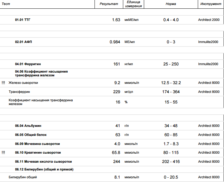 открыть спойлерАнализы