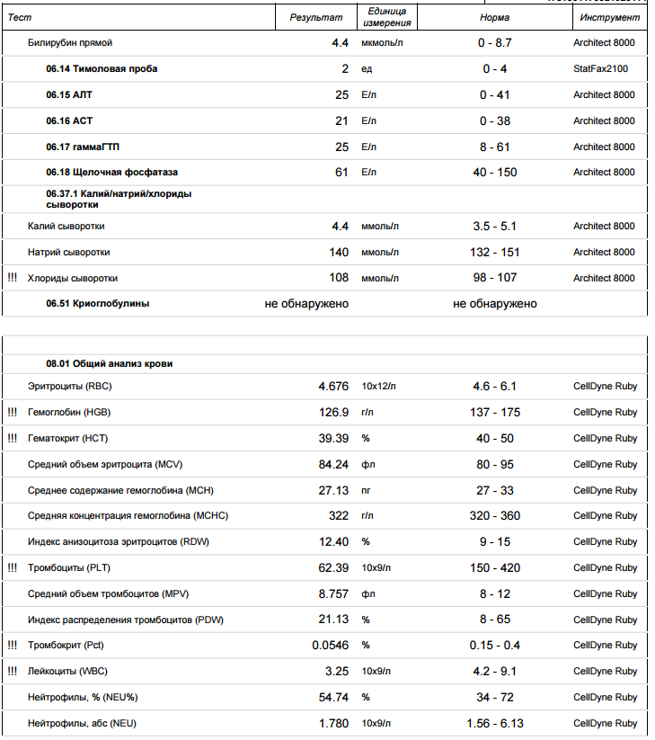 Спасибо! Думаю сдать ПЦР через недельку. Так же и оак, билирубин и альбумин. На днях сделаю табличку анализов, что сдавал во время терапии.
