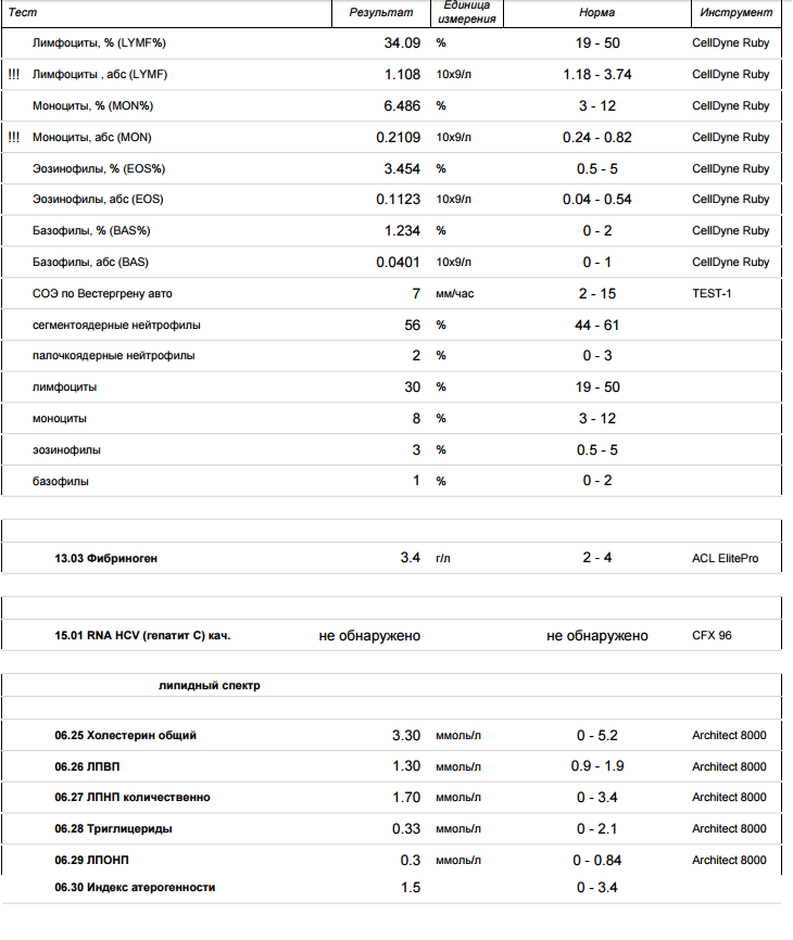 Такое впечатление, что кровушку водой разбавили. Думаю рибавирин изгадил картину. Блюдя фигуру, не увлекайтесь сильно. Сбалансированное и полноценное питание важно для реабилитации.