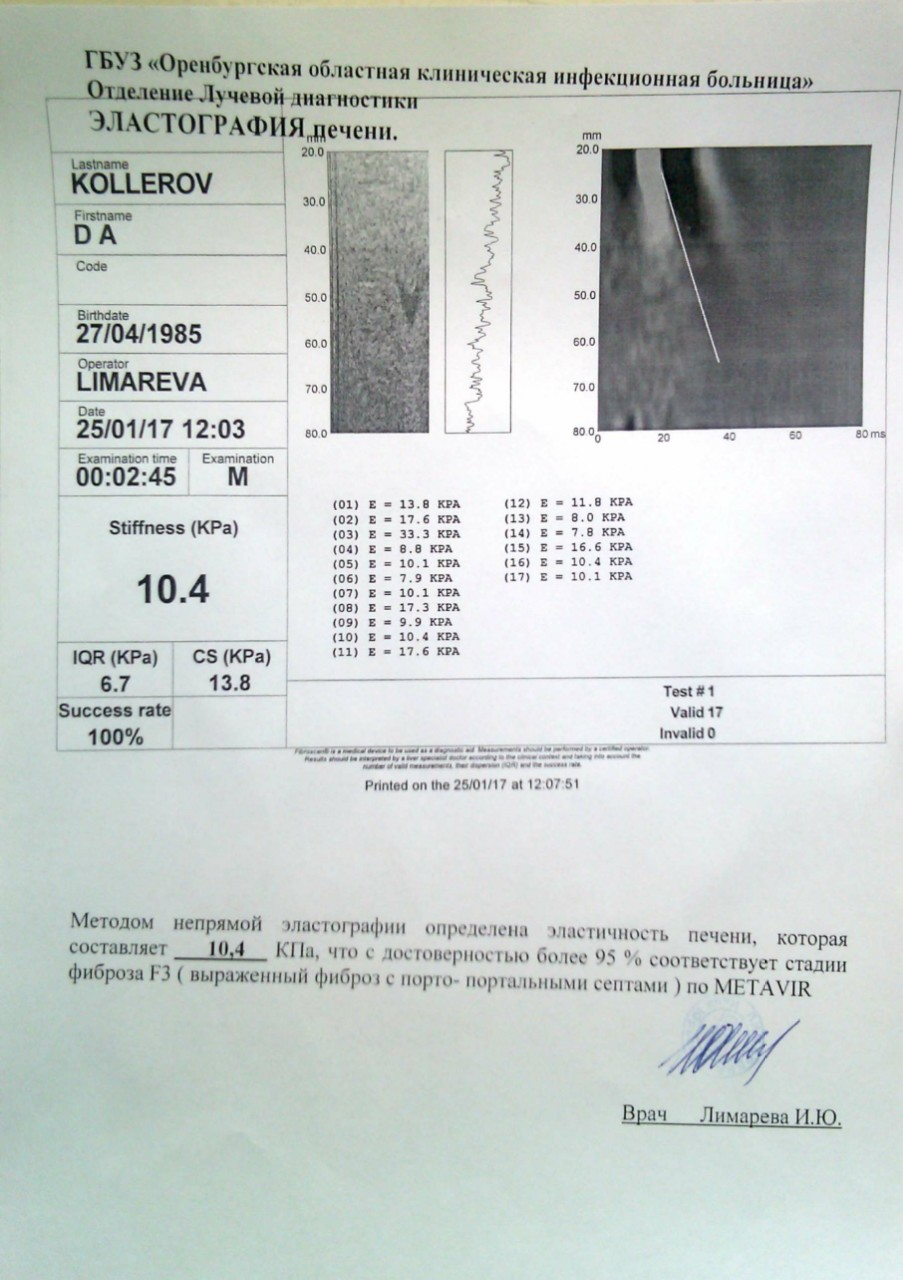 фиброскан на 25.01.2017 - F 3 , 10.4 КПа