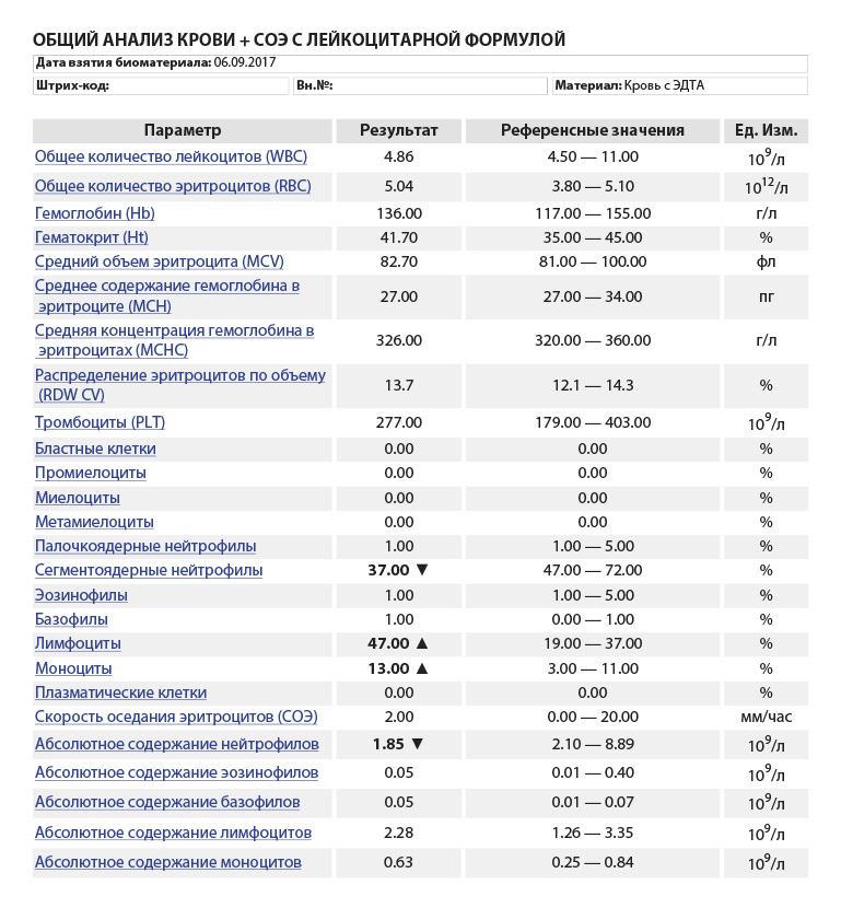 Сегментоядерные нейтрофилы и их абсолютное содержание понижено, лимфоциты и моноциты повышены…