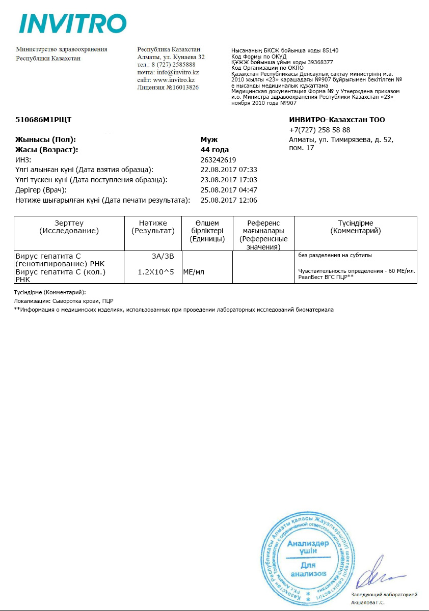 ГепС, ген. 3a/3b, 1,2x10^5 МЕ/мл на 22.08.2017.