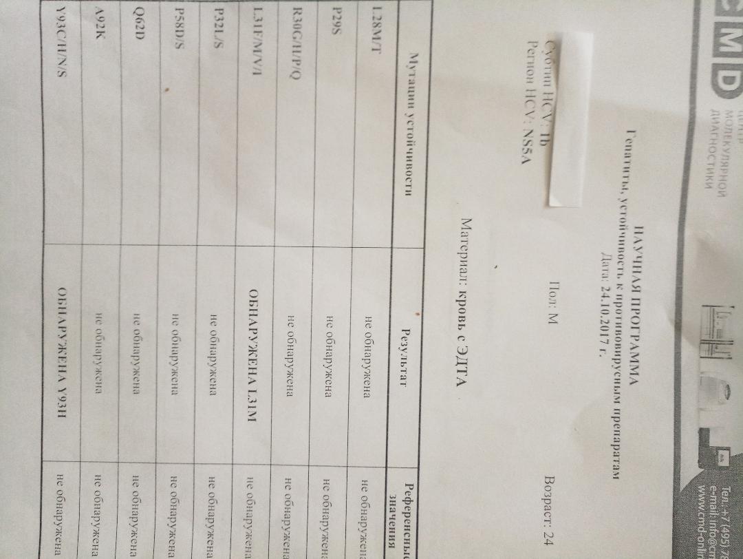 генетический анализ NS5A обнаружено L31M. Y93H