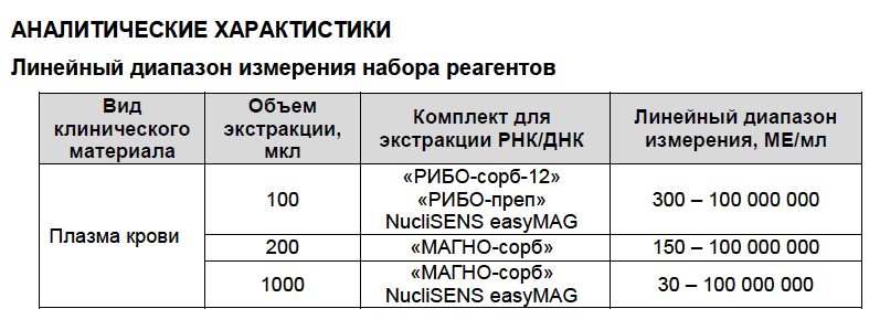 Это линейный диапазон измерения, там в методике идет 2 выделения - 1 дубль на количественный тест от 30 МЕ/мл, 2й - на качественный от 10 МЕ/мл. Т.е. если количественно не измерится, то просто будет обнаружен при концентрации выше предела детекции. Максимально информативный тест получается.Virtuose писал(а):В список внесли, а инструкцию к нему пока не обновилиvvp писал(а):Чувствительность ПЦР-набора и была такой при использовании 1 мл плазмы, просто саму методику анализа внесли в список постоянных услуг.Это разве по регламенту