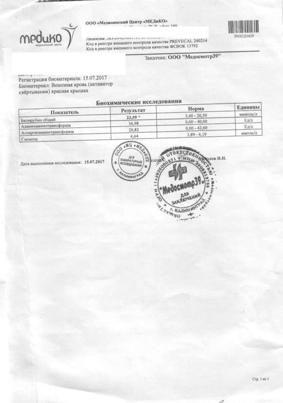 - Гепатит: Не обнаружен