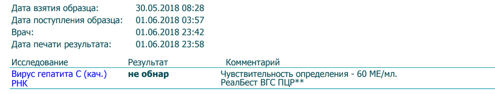 Обнаружен гепатит С. Был.