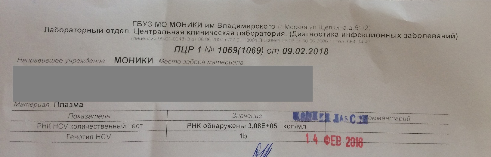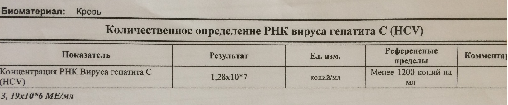 На этом бланке в левом углу и в МЕ/мл замеры количества вируса - 3190000 ме/мл.