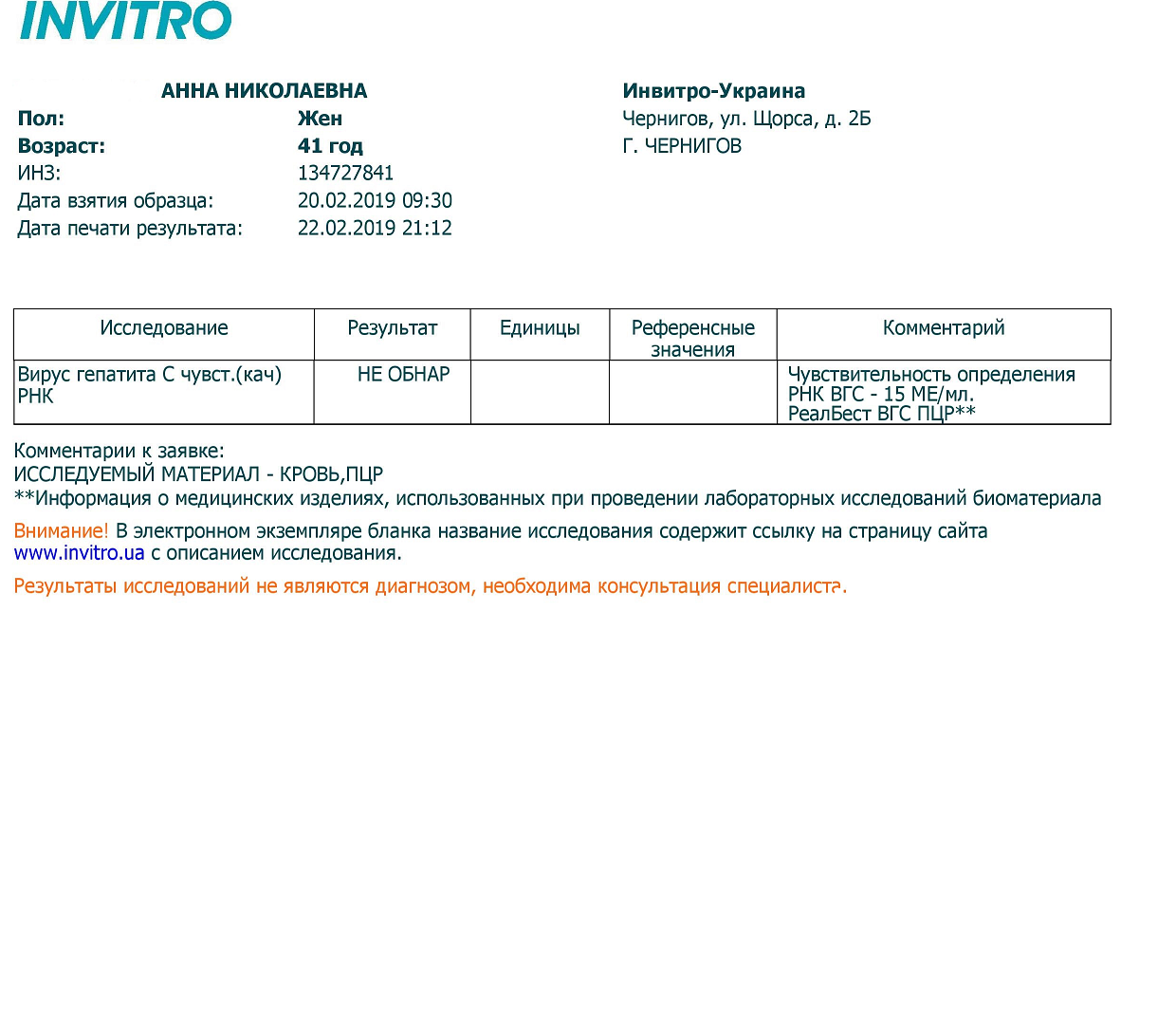 Finish 13/02/2019 -Кач.ПЦР - Не обнаружено (Инвитро 60 ме)