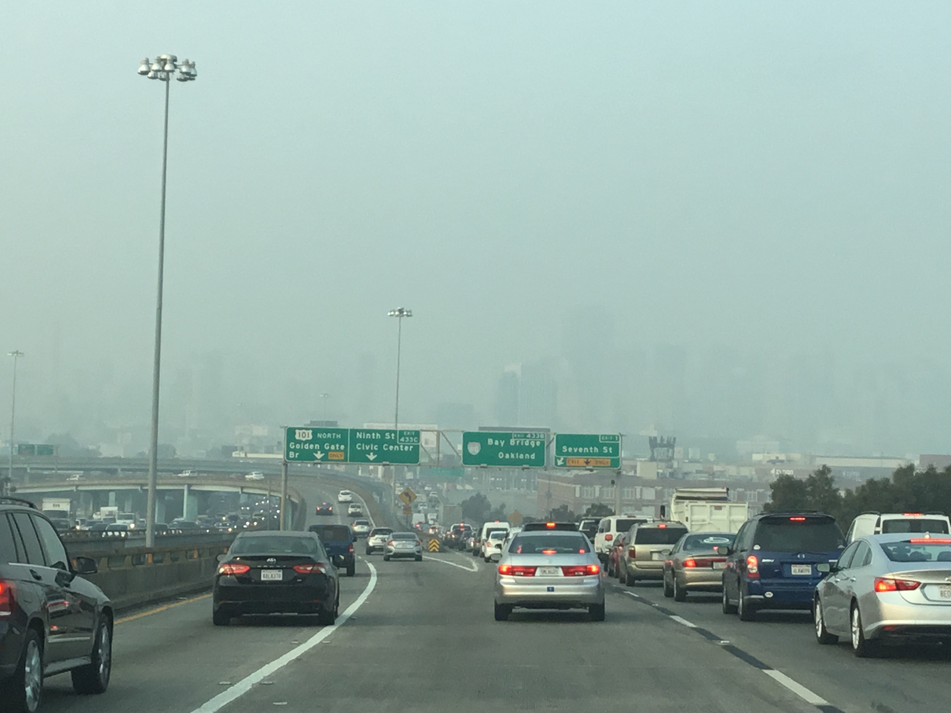 Город в дыму пожаров, снято на телефон.