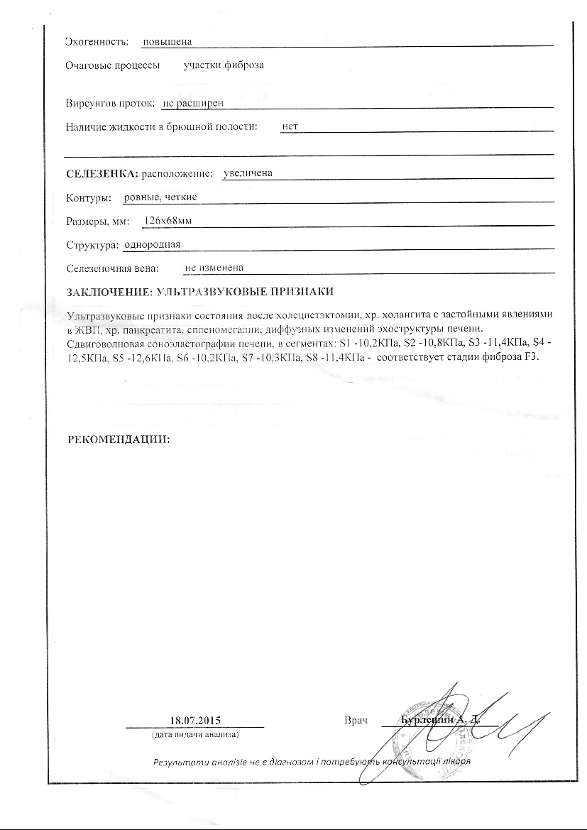 Ириш, приветик, ждать каких-то улучшений в плане снижения фиброза, еще рано, да и доктор, помнит меня еще с зимы, поэтому мог и перестраховаться, в доктор Вера Узи буду делать скорее всего весной, раньше смысла не вижу. А вот почему воротная вена расширена до 17 мм, в январе была норма, мне непонятно. Хотя опять таки он мог перестраховаться и написать побольше в связи с высокой степенью фиброза. Но самое главное убить виря и надеюсь потихоньку печень восстановится. Блин не могу найти Киевское Узи.