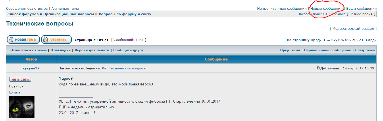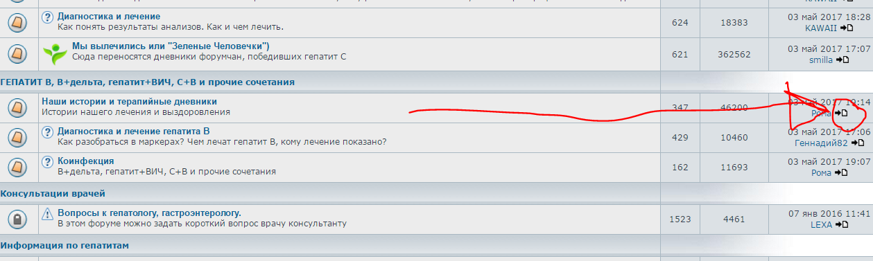 Да, если кто-то не знает, на главной странице есть иконки, кликнув по которым, можно перейти к последнему сообщению темы