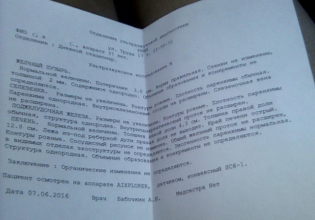 Прикладываю результат УЗИ, выполненного в первый день на дневном стационаре.