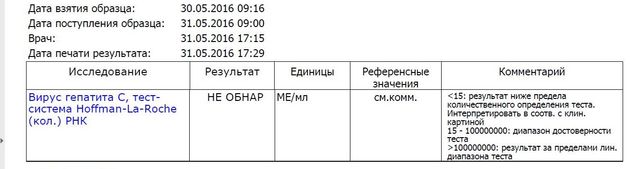 Вот и славненько! Спасибо за инфу по "Гепатологу"....не понравилась мне у них эта кнопочка на входной двериВ добрый путь писал(а):30.05.16 "-" (15 МЕ -Инвитро)