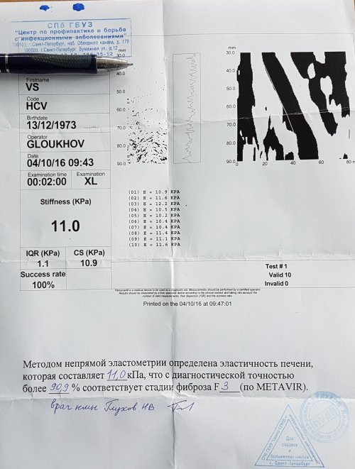 Фиброскан 08.2015 (11.0 КПа ) 01.2016 (10.4 КПа, 07.2016 -7,9кПа