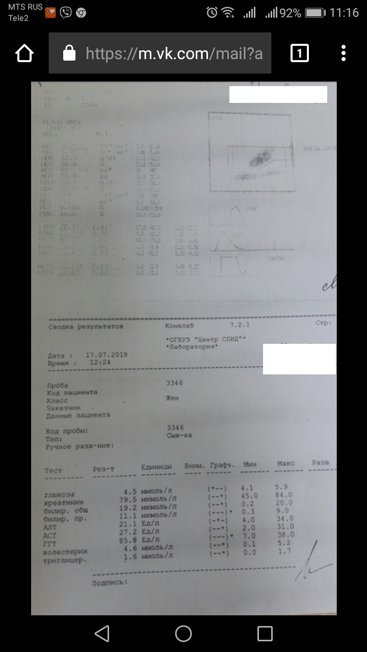 Всем доброго дня! Я получила анализы. Прогресс большой, я этому очень рада. Это не минус конечно, но все круто изменилось