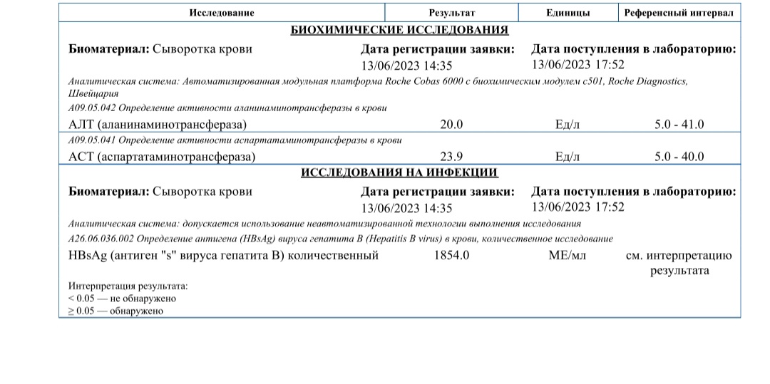 Нет такой таблицы. Наличие HBsAg в любом самом малом количестве не может быть нормой, оно говорит о том, что человек болен гепВ. Когда этот антиген перестанет обнаруживаться в крови (его количество станет равным нулю), человек будет считаться функционально выздоровевшим. Величина количества HBsAg, изменения этой величины вне терапии не информативны.TalismanEkb писал(а): ↑15 июн 2023 19:34 не могу в инете найти какую-то таблицу с количеством, норма это, много или ещё что-то там....