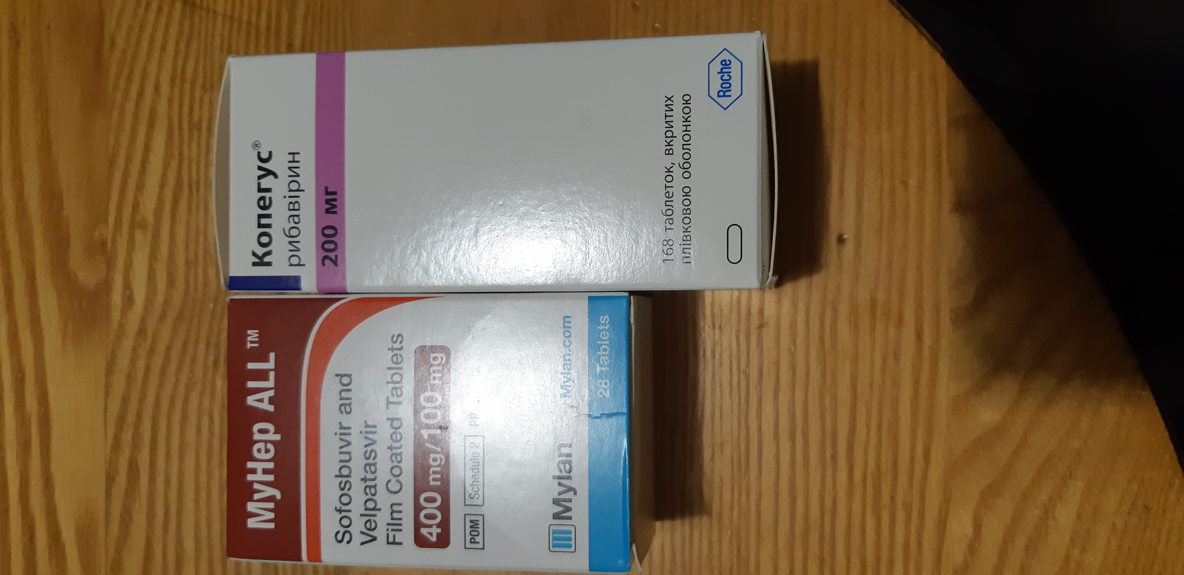 ПВТБанка софвела (28 шт.) и упаковка рибавирина ( 168 шт.), это на 4 недели приёма.