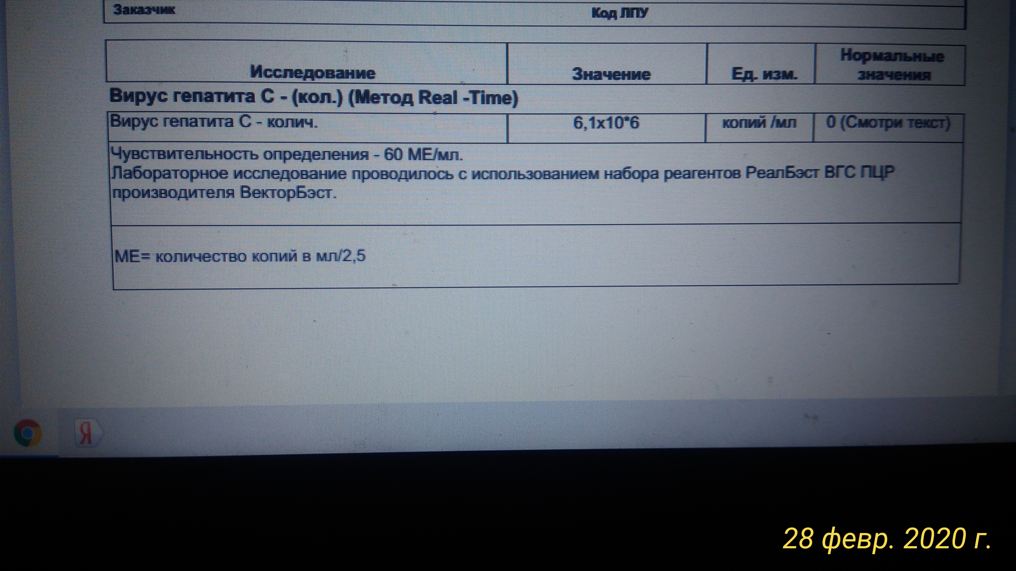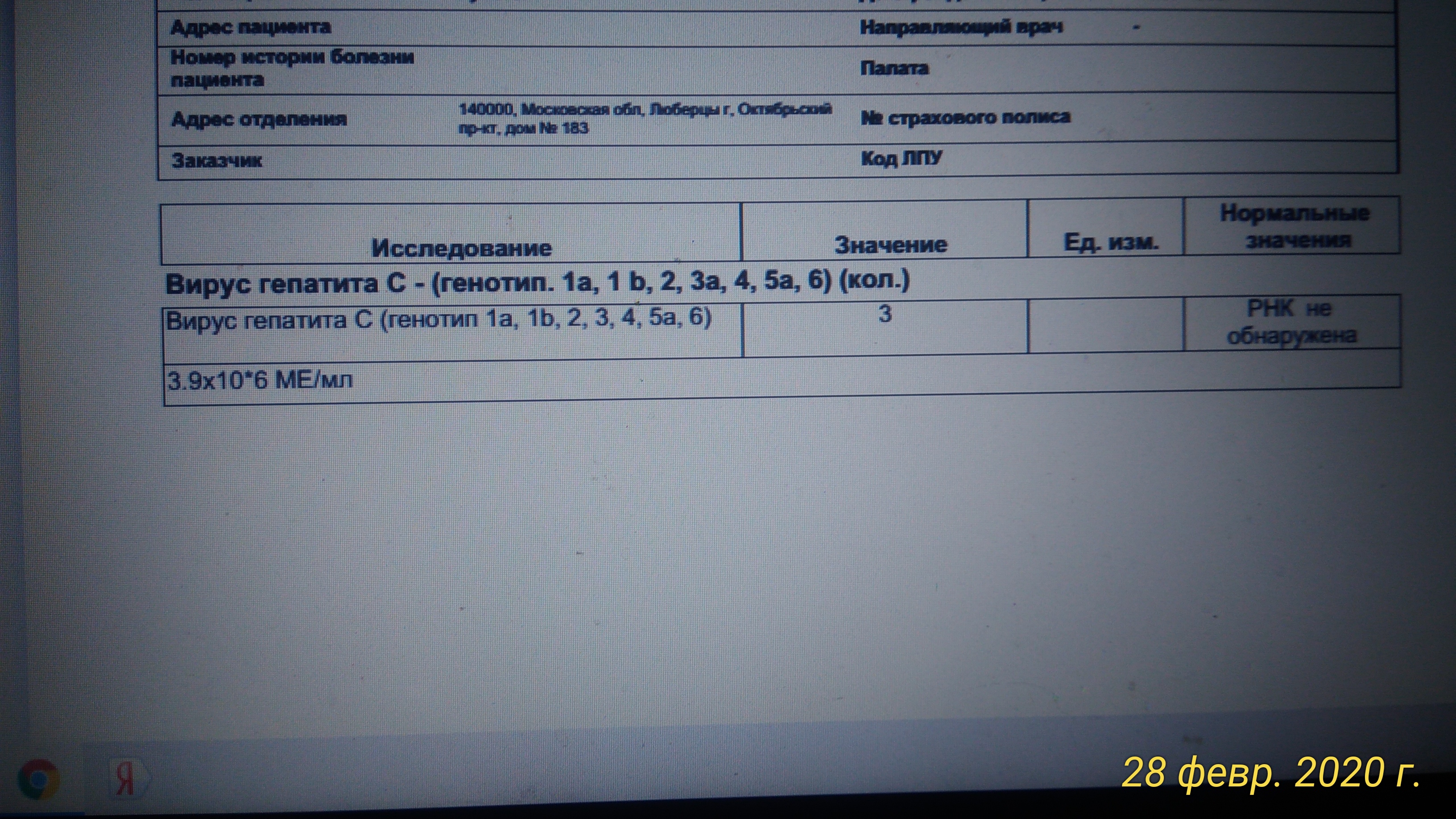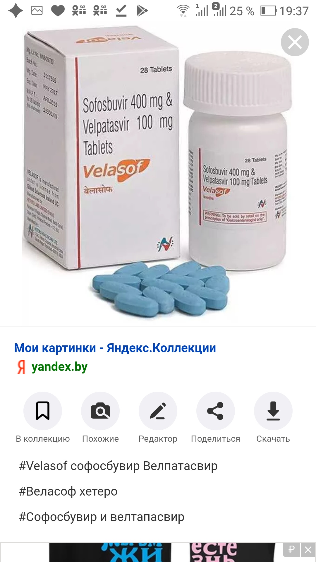 Итак. В 2018 году мужу поставили гепатит С. Приехали в Москву и пошли к врачу. Он говорит так мол и так есть таблетки, цена 20 тыс. На месяц. Фото прилагаю. Пили мы три месяца. За это время, нам даже ухи не предложили сделать. Сами сделали анализ.