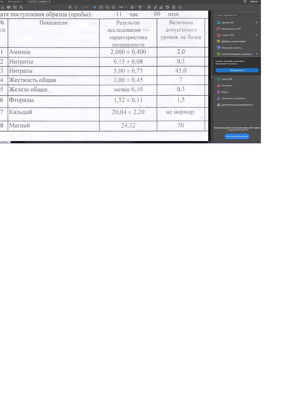 Ну,вот и пришли результаты воды,которую мне надо больше пить,чтобы разжижать кровь. Мои подозрения оказались не напрасными,хоть я и подозревал превышение всякого железа-железо всякое оказалось вполне себе в норме,а вот аммиак