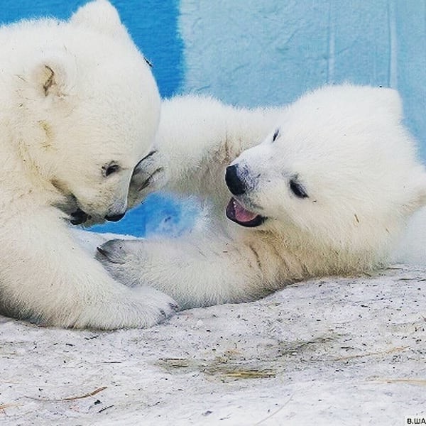 Ветеринары наконец-то смогли узнать пол белых медвежат в Новосибирском зоопарке