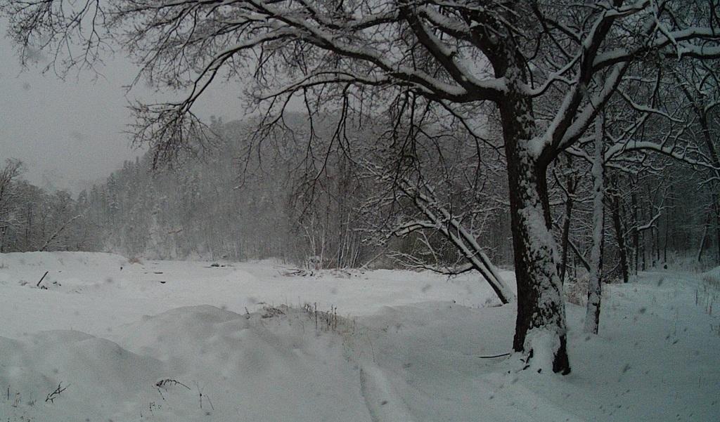У нас наконец то выпал первый снег. Всю зиму ветер только пыль гонял.