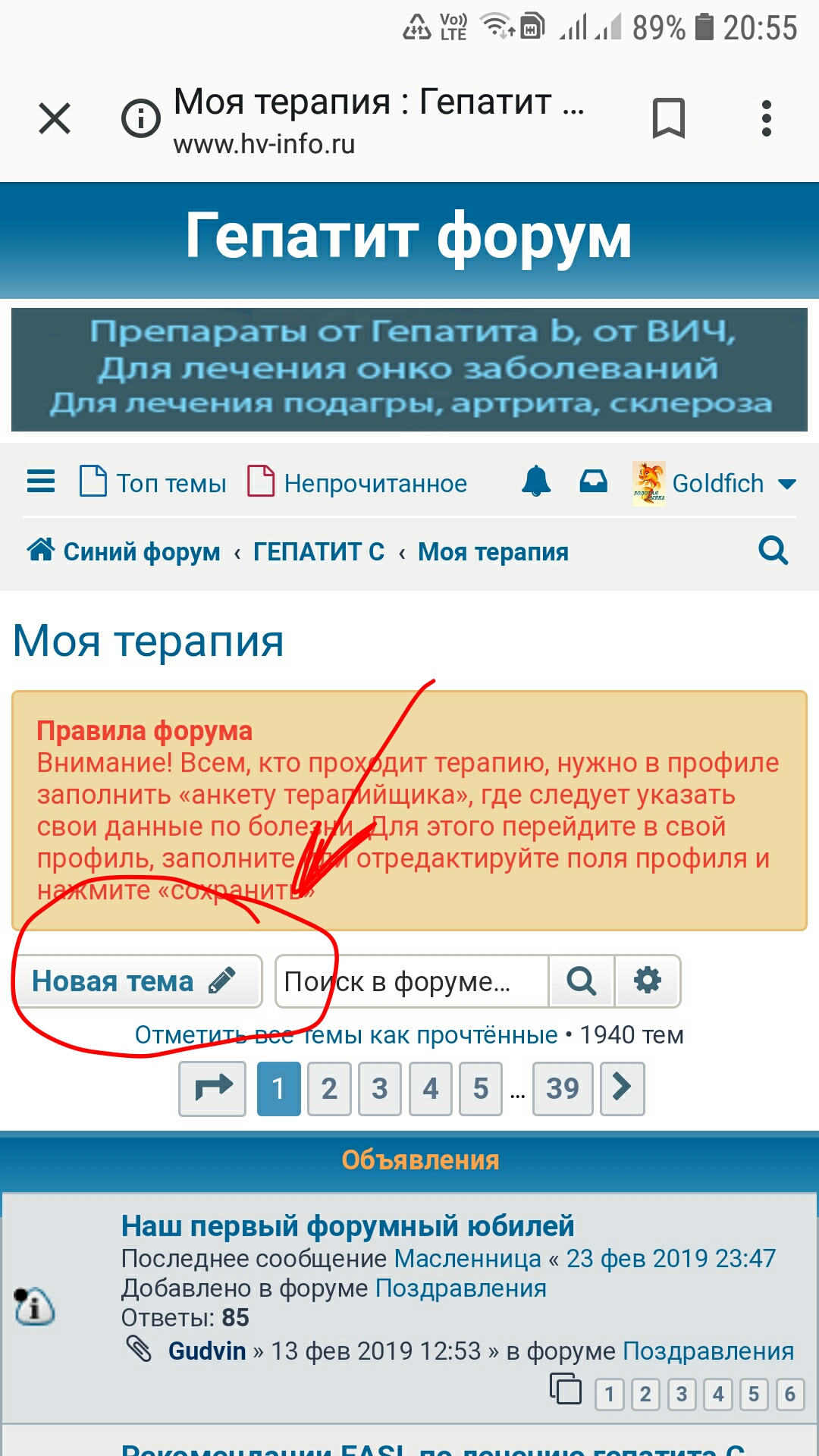 Внимание! Всем, кто проходит терапию, нужно в профиле заполнить «анкету терапийщика», где следует указать свои данные по болезни. Для этого перейдите в свой профиль, заполните или отредактируйте поля профиля и нажмите «сохранить»