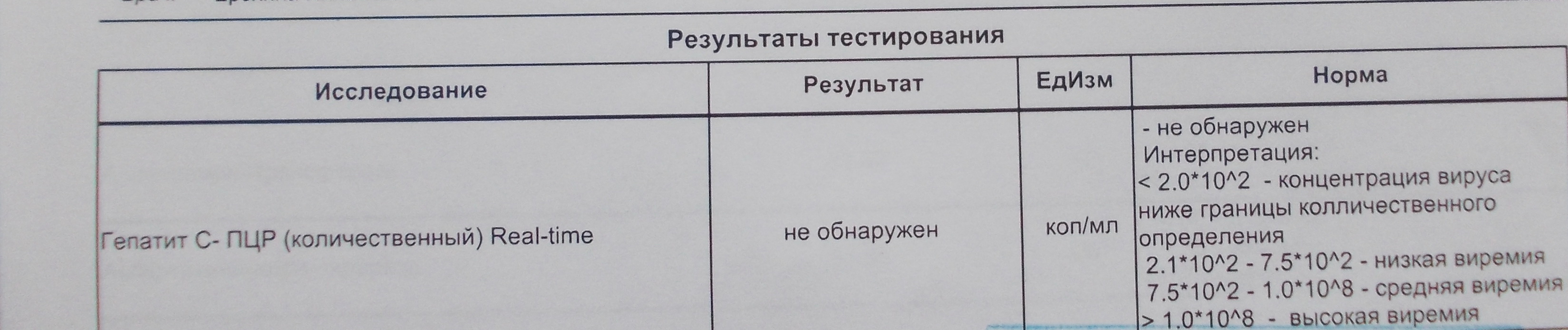 Для уточнения. Результат вашего анализа после 4 недель, вируса менее 200 копий. Какой, кстати, коэффициент пересчёта копий в мешки в той лабе?