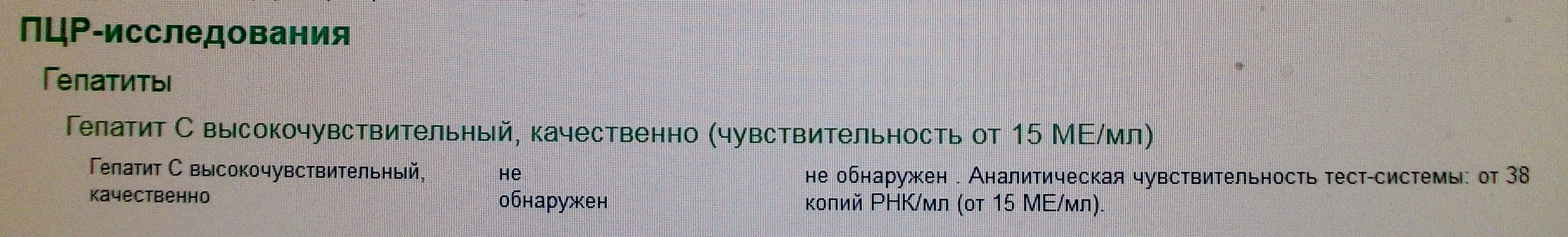 врач назначил после первого месяца сдать Гепатит С - ПЦР (количественный ) Real time , через второй качественный PNK HCV качественный , через три месяца PNK HCV (количеств ,чувств.15ME) , вот пью третью банку , энтузиазм конкретно пропал