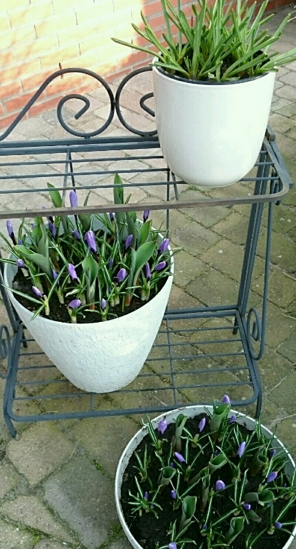 У меня с прошлого года много насажено в горшки, разные виды тюльпанов, мускари, крокусы(уже сидят в одном и том же горшке много лет), гиацинты. Все они трогаются в рост в разное время.