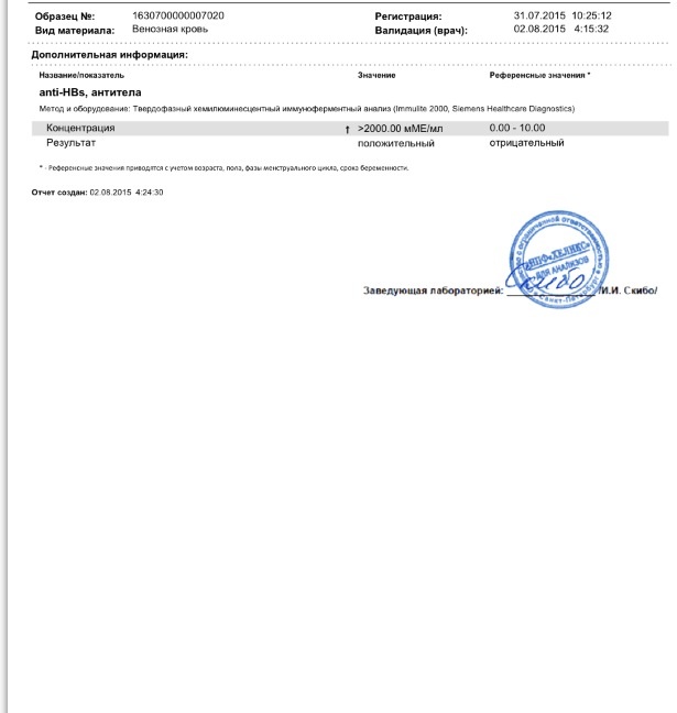 Всем привет,всем желаю хорошего лета и отдыха.Друзья и товарищи прошу помощи в консультации по такому вопросу.Супруге 2 месяца назад сделали прививку от гепатита B,и сейчас такой результат.вопрос такой.Достаточно ли антител в крови и можно ли теперь заводить детей,не пепедам ли я ей свою проблему.Заранее спасибо.