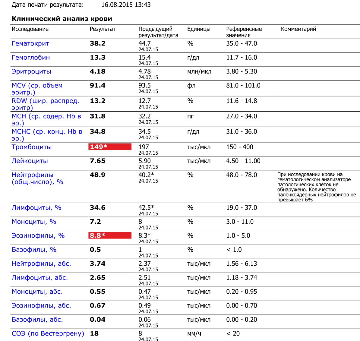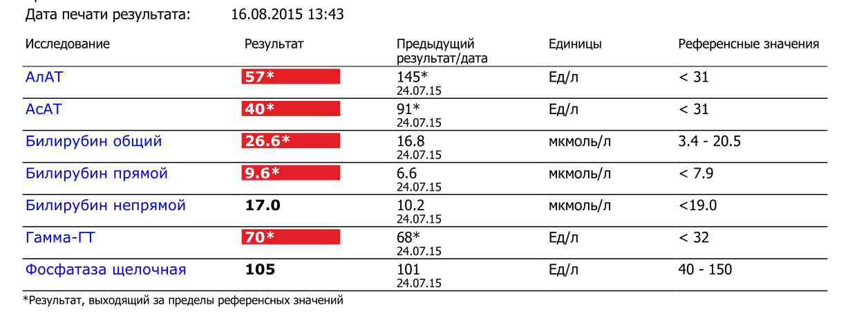 Получила результаты ОАК и биохимии после 2-х недель лечения, предыдущие значения перед началом ПВТ. Напрягают эозинофилы, повышение билирубина.