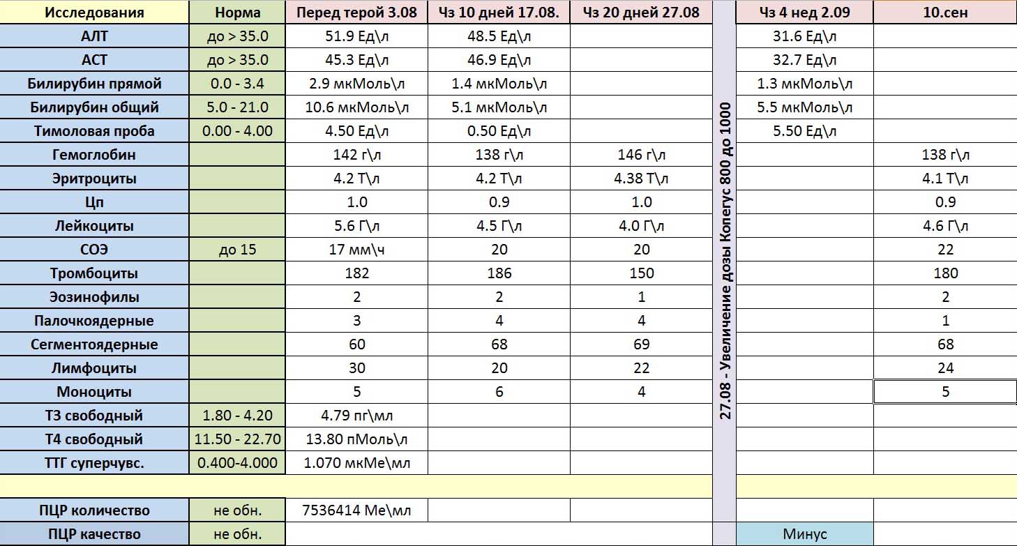 Начало ПВТ 06.02.2015 г. вес в начале-80 кг Пегферон 180 Копегус 1400 с 20.02. 1200 с 28.05.2015-GratisovirТерапия окончена 19.08.2015 г. УВО-12; УВО-24; УВО-48