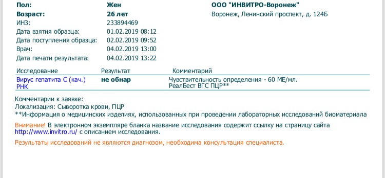 Finish 13/02/2019 -Кач.ПЦР - Не обнаружено (Инвитро 60 ме)