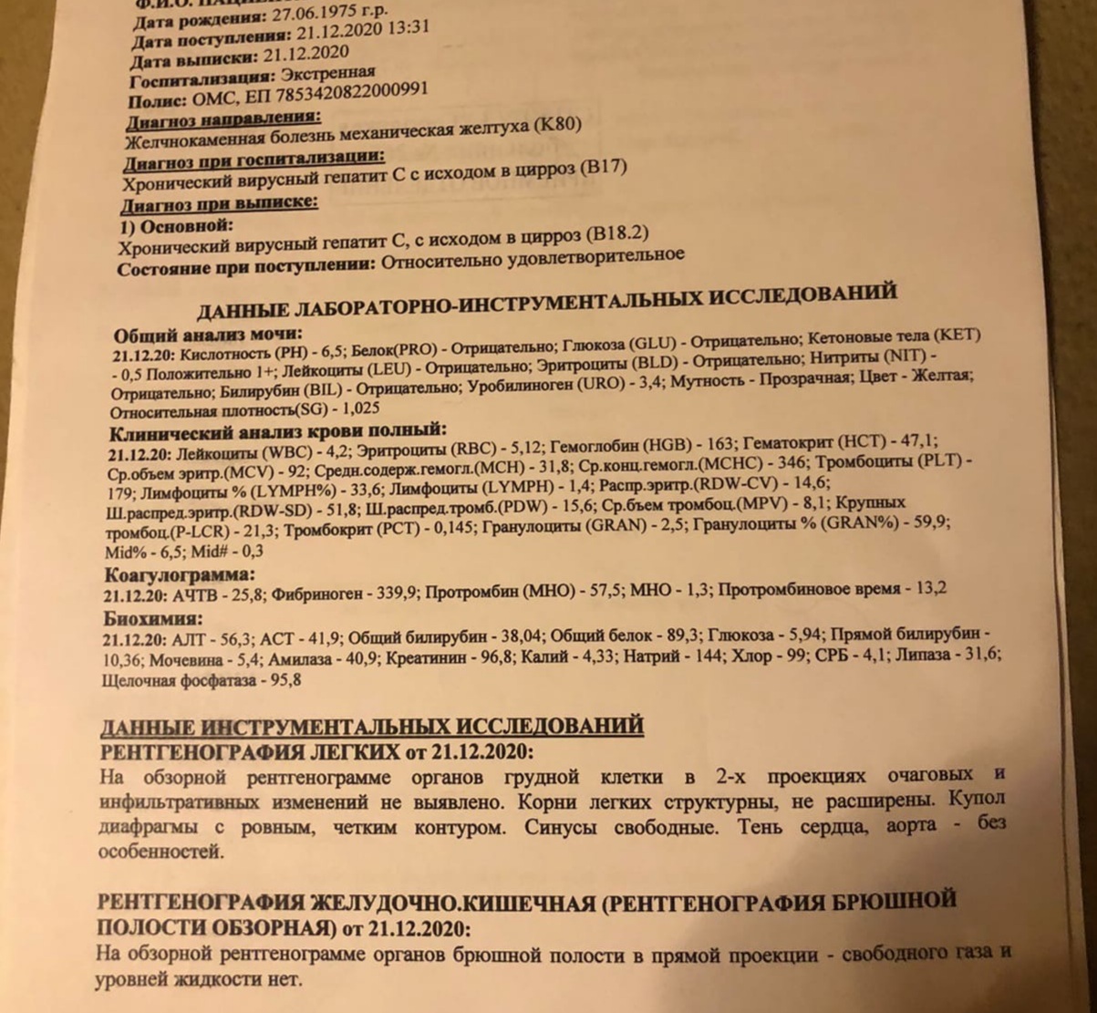 25.12.2020 - МИНУС. Гепатита 3а нет
