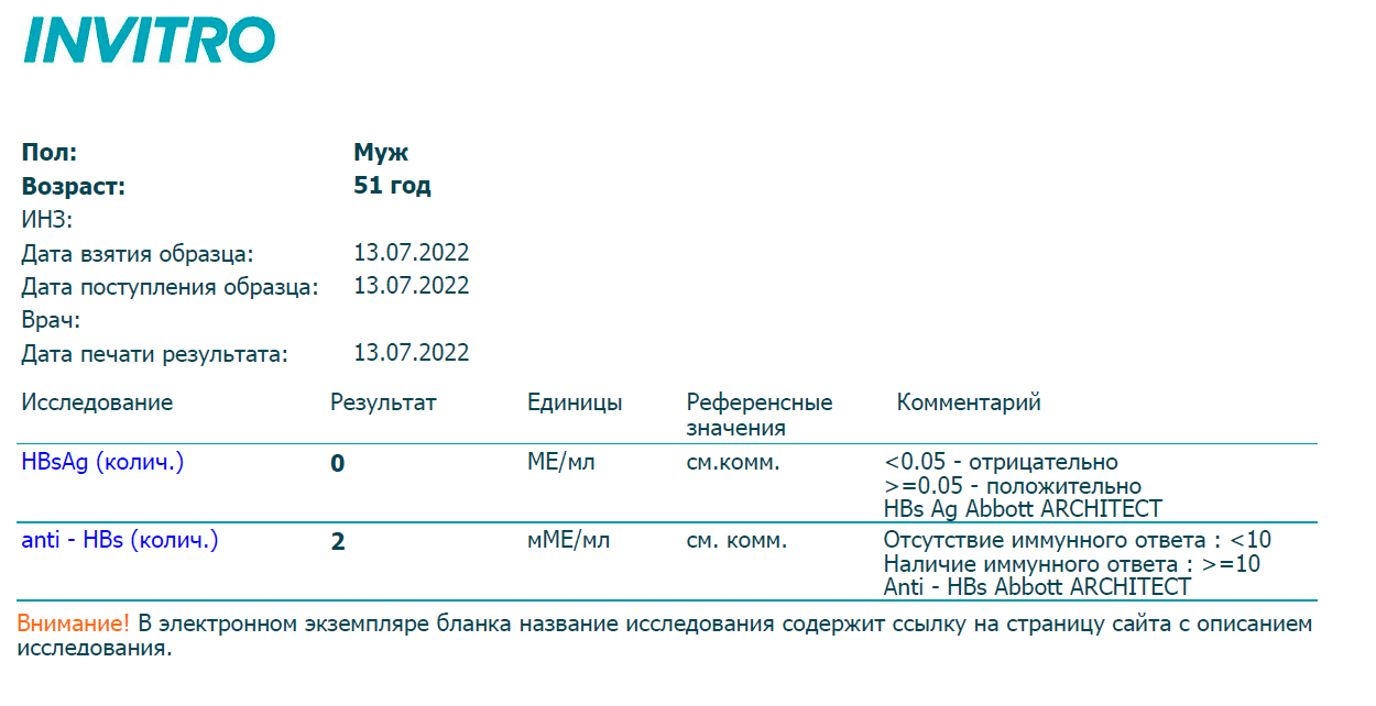 И вот, последний анализ в Инвитро HBsAg от 12 мая 2021 г. количественный показан 0,05 мме/мл при Anti-HBs 2 ме/мл