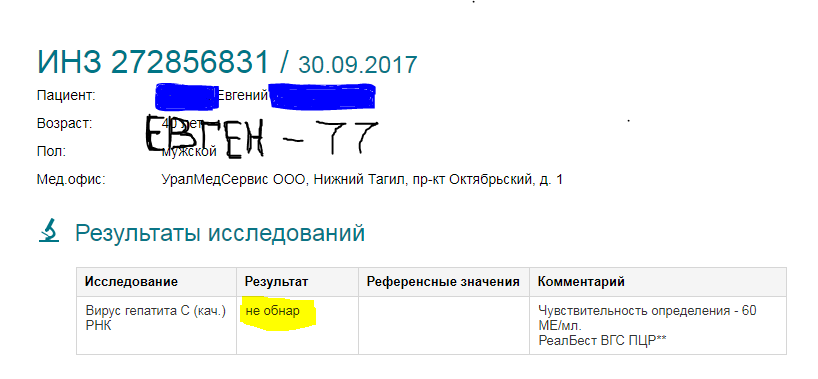 Гепатит: С ушел в минус