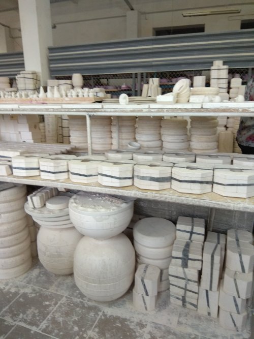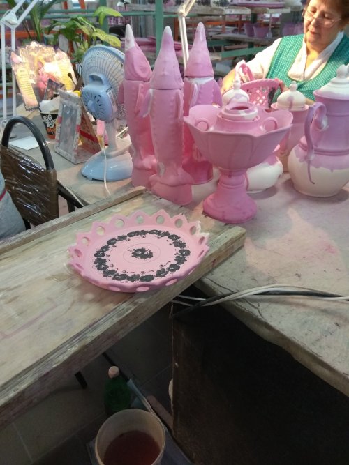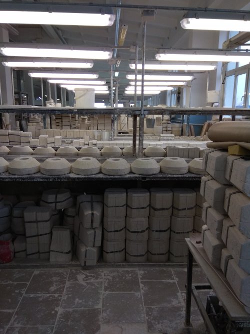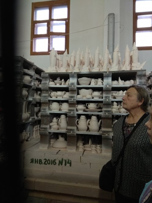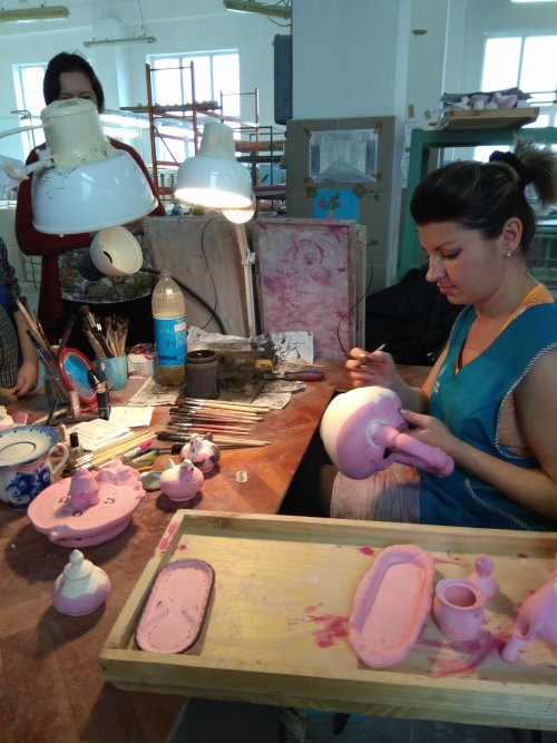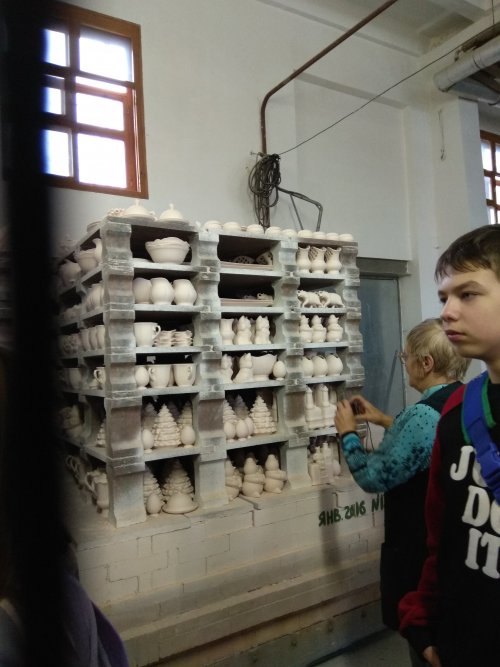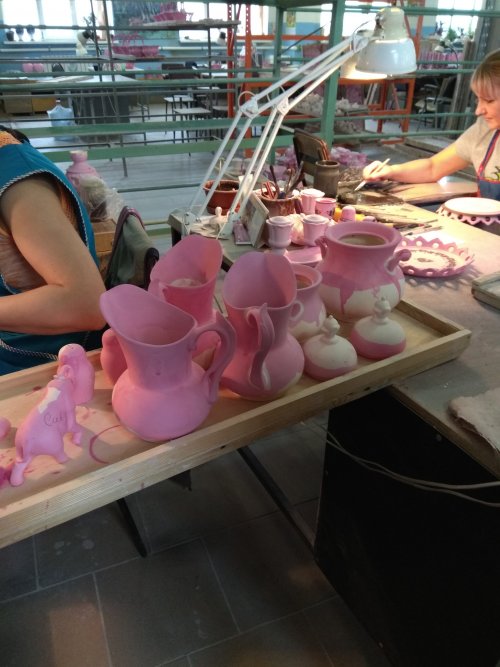 На самом деле там очень интересно, особенно в производственном цеху, и они ни как долго не могли понять как из розовой глины с серым рисунком, получается красивое белое изделие с голубым рисунком.