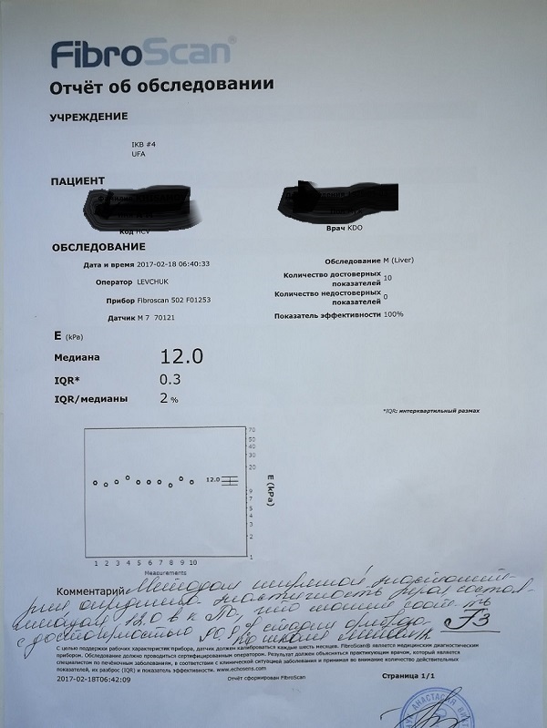 Вчера прошел фиброскан через 24 недели после лечения.
