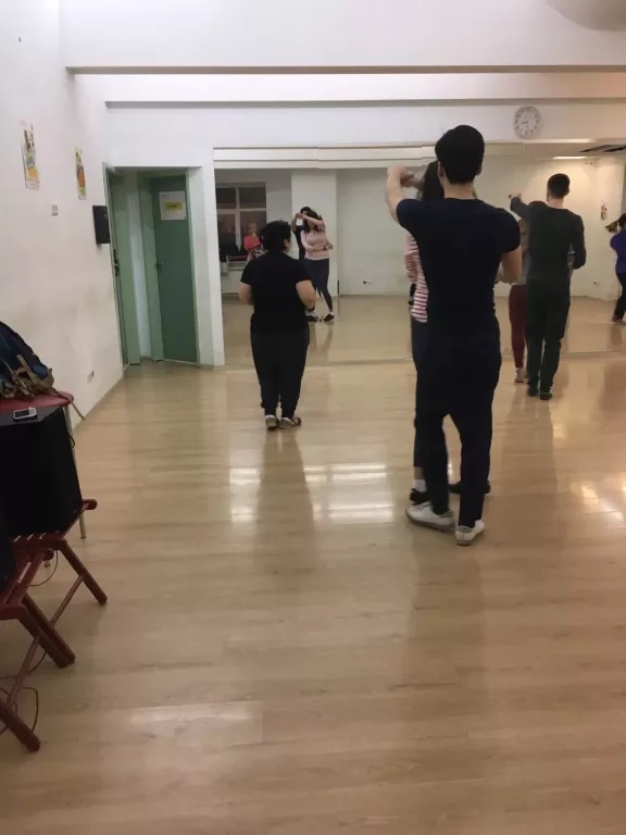 А это в школе танцев учимся крутить бачату , мальчик кореец , уже научился" ласты " от пола отрывать ,,,, и тетя в теле танцует здорово