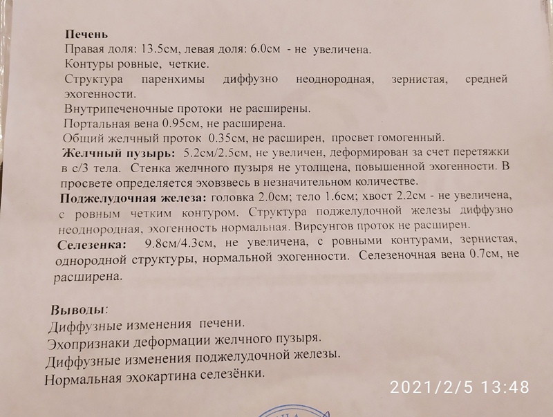 Gudvin, здравствуйте, сделала вчера узи, узист сказала, что все в норме, но заключение меня как-то настораживает. Уже весь интернет перечитала, так и не пойму, это пределы нормы или все таки, не все там так хорошо. И еще вопрос, обязательно ли делать фиброскан, каждый раз отпрашиваться с работы проблематично. К врачу в понедельник, хотелось бы понимать, что делать дальше и от каких назначений стоит отказаться. Спасибо.