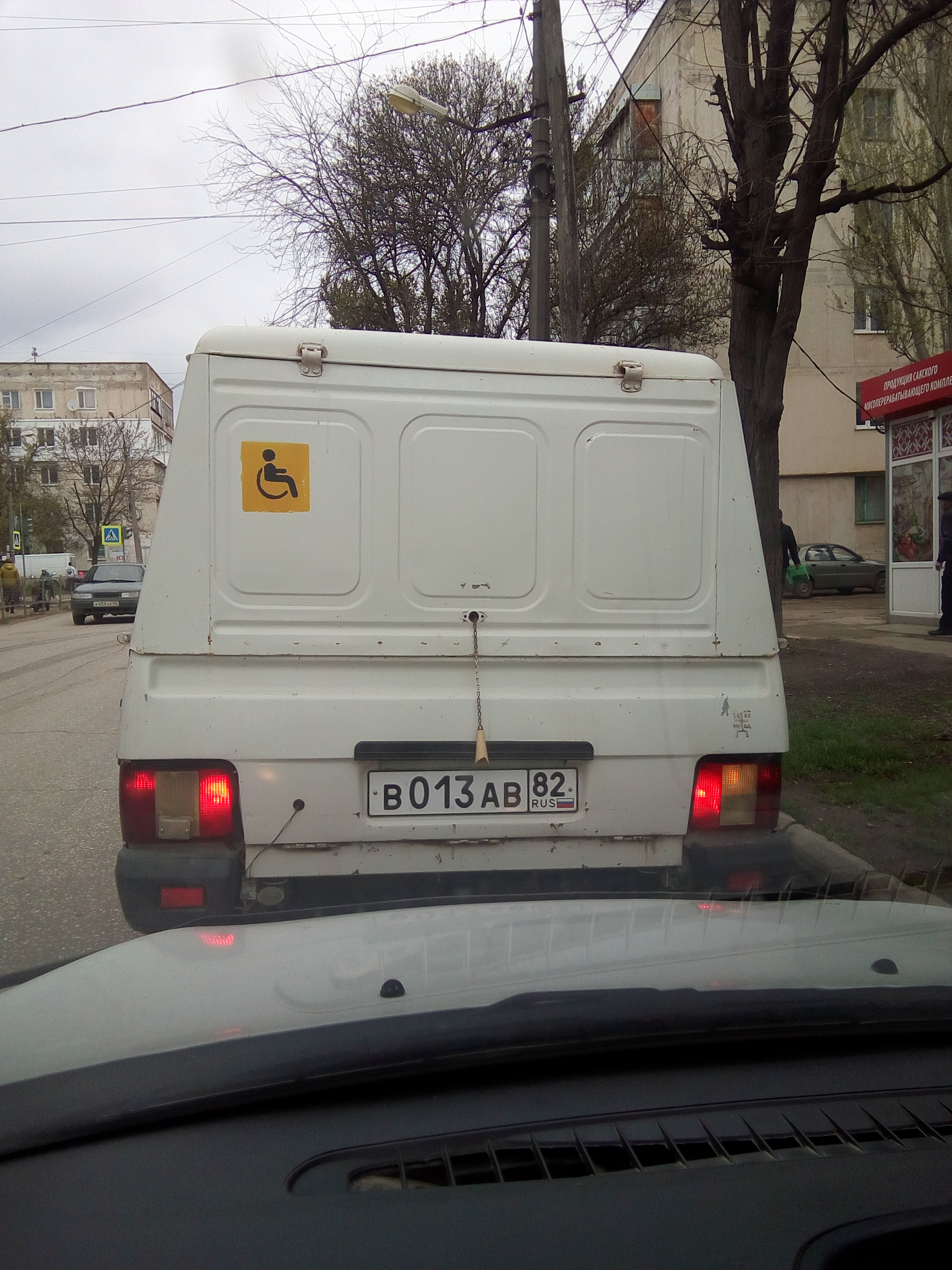 Вот вам анекдот свежайший.(Высмеиваю не значок инвалида,а веревочку с унитазного бачка посредине).Ехал утром с малым в садик,и встретил белый унитаз на колёсах для инвалидов.