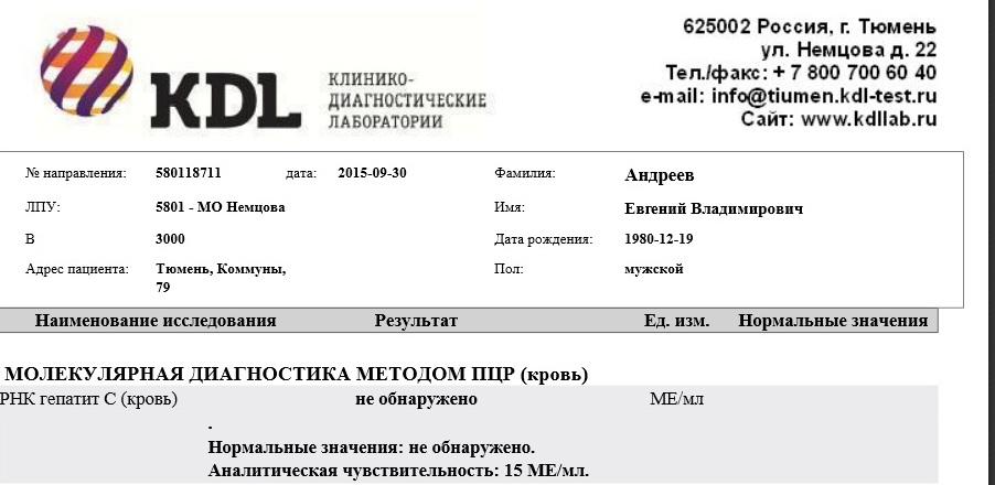15.11.15. - ПЦР не обнаружено (Гемотест).